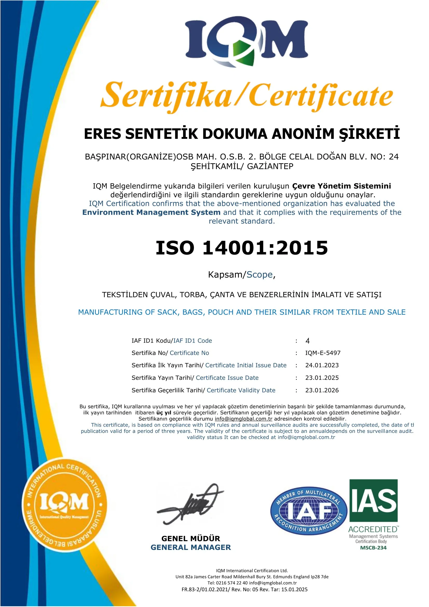 ISO 14001 Sertifikası
