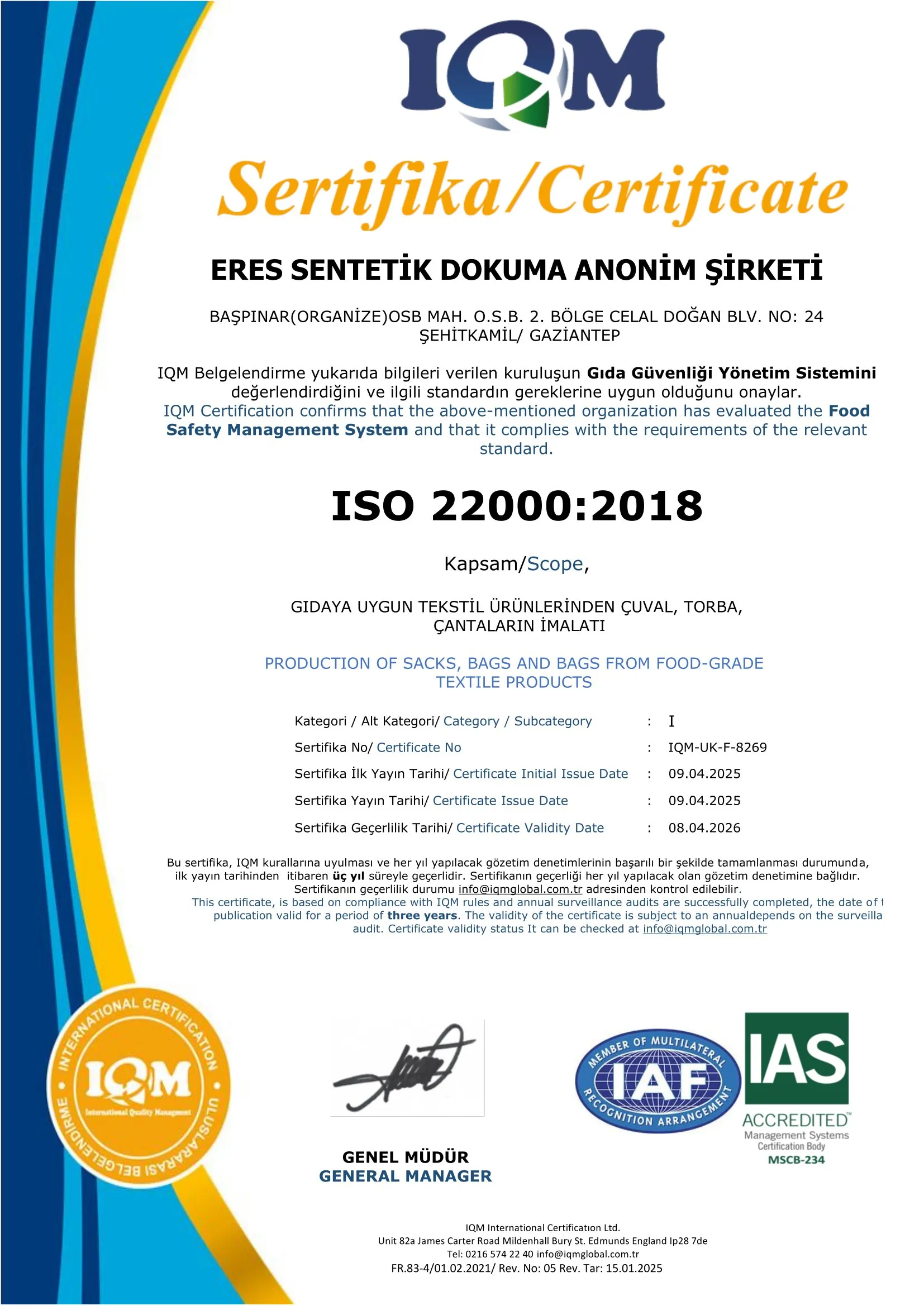 ISO 22000 Sertifikası