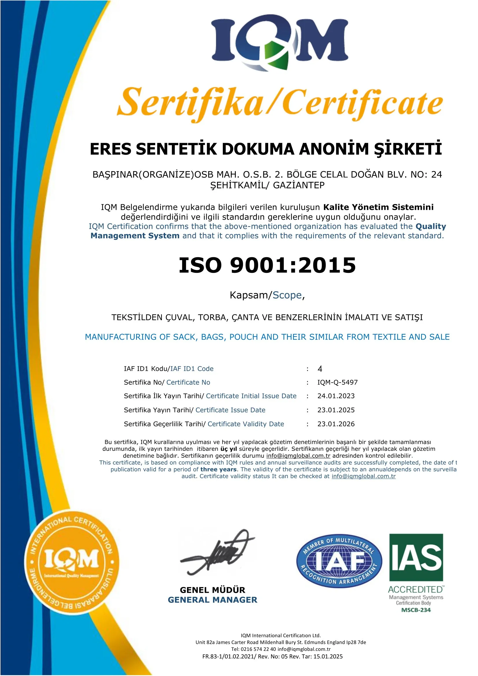 ISO 9001 Sertifikası